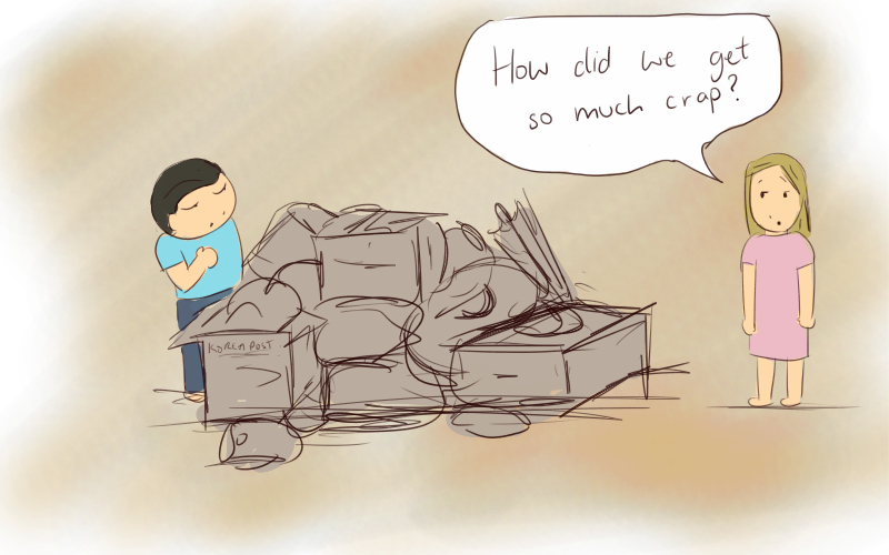 When we moved back to Sydney last year we both just came with suitcases but now we have this huge pile of stuff we have accumulated. We have sent a few winter things to Korea but we’ll only be taking to Korea what we can take on the plane. We aren’t shipping anything there. I look at all our stuff and wonder how we managed to get it all…